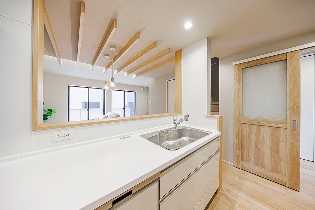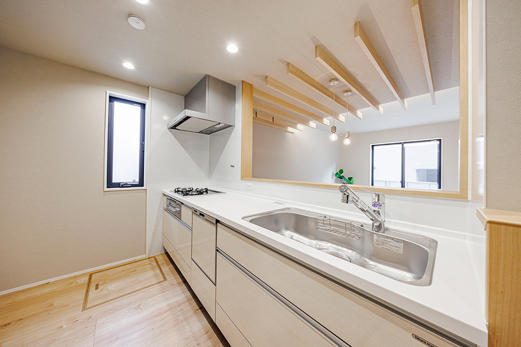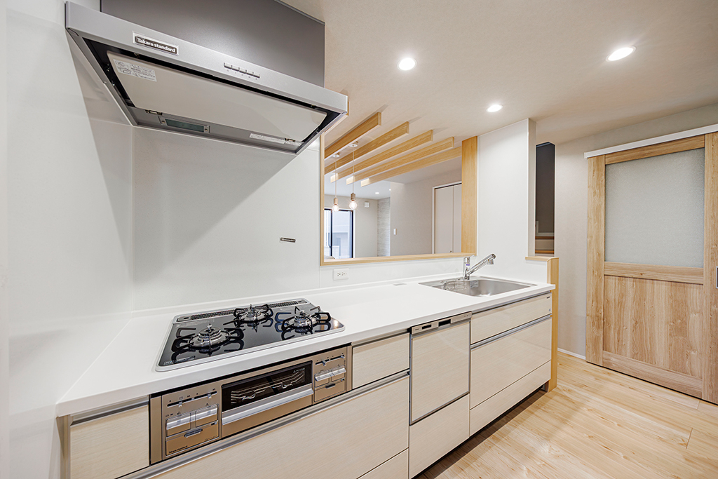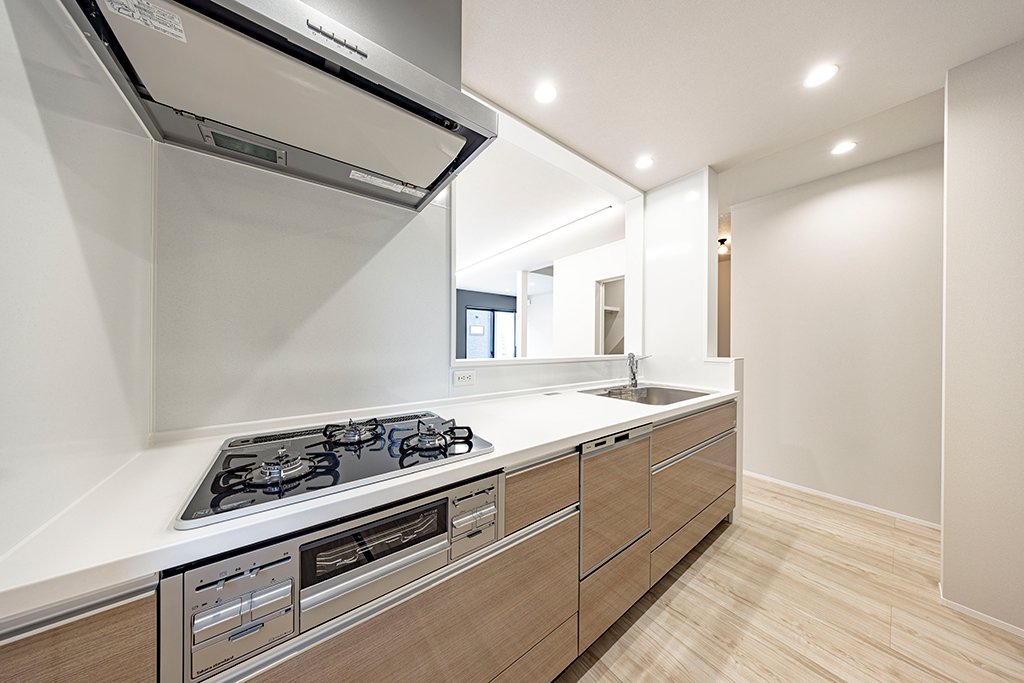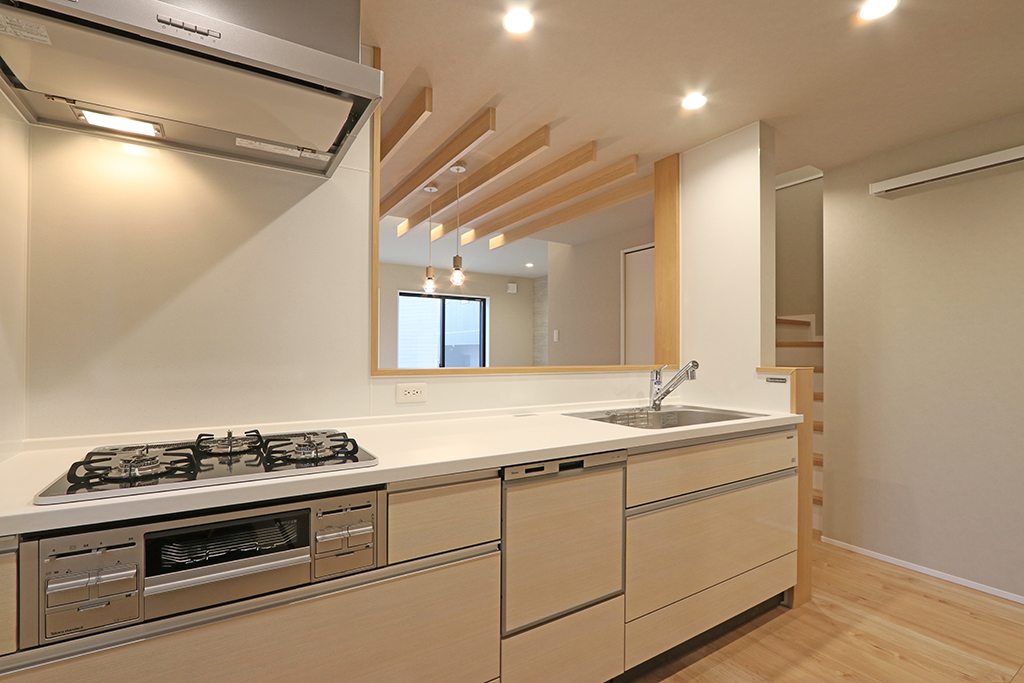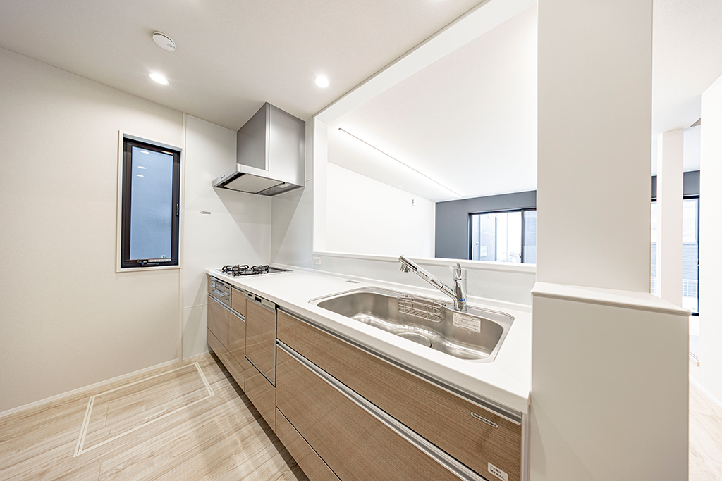 開放的なLDKが見渡せるオープンタイプのキッチン。リビングで過ごす家族との会話が弾みます。