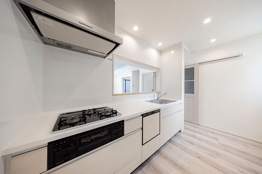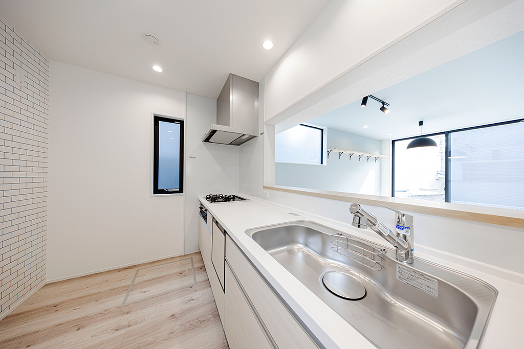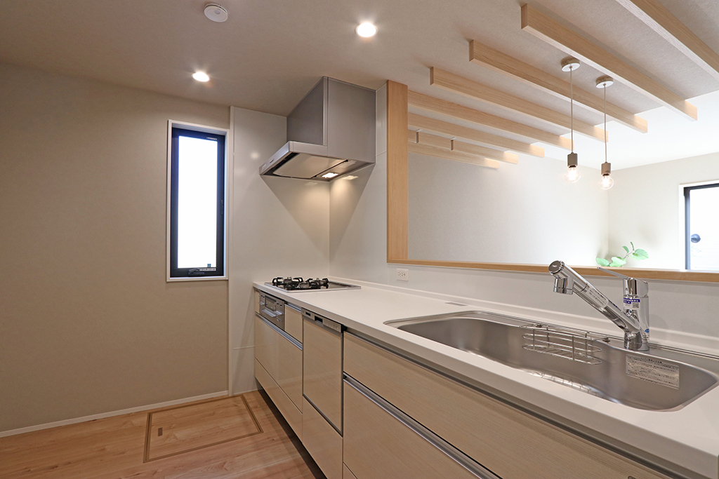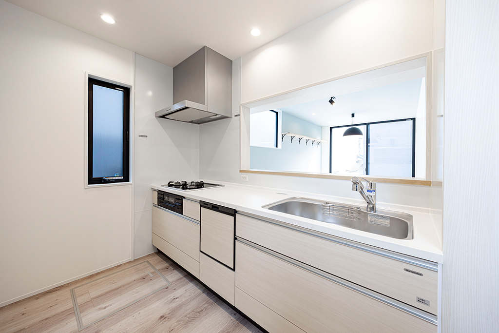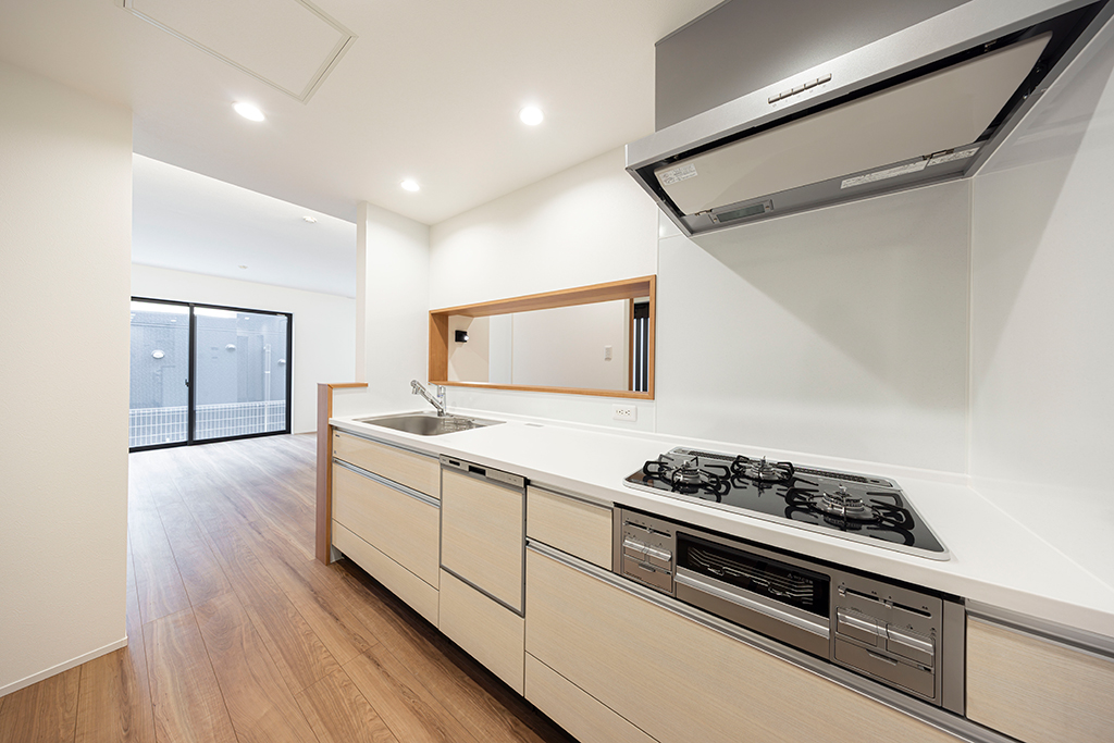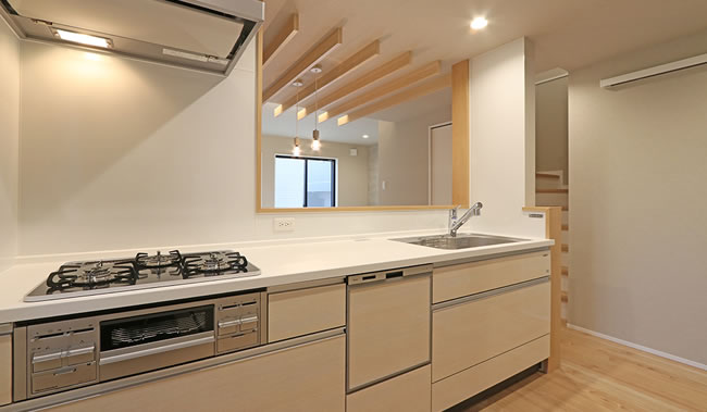 開放的なLDKが見渡せるオープンタイプのキッチン。リビングで過ごす家族との会話が弾みます。