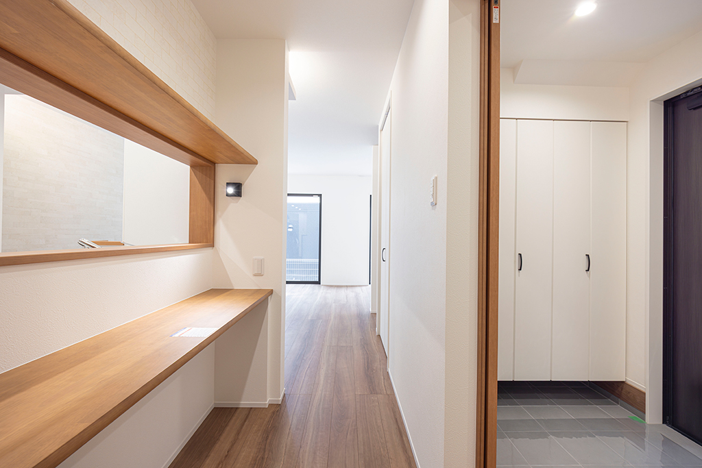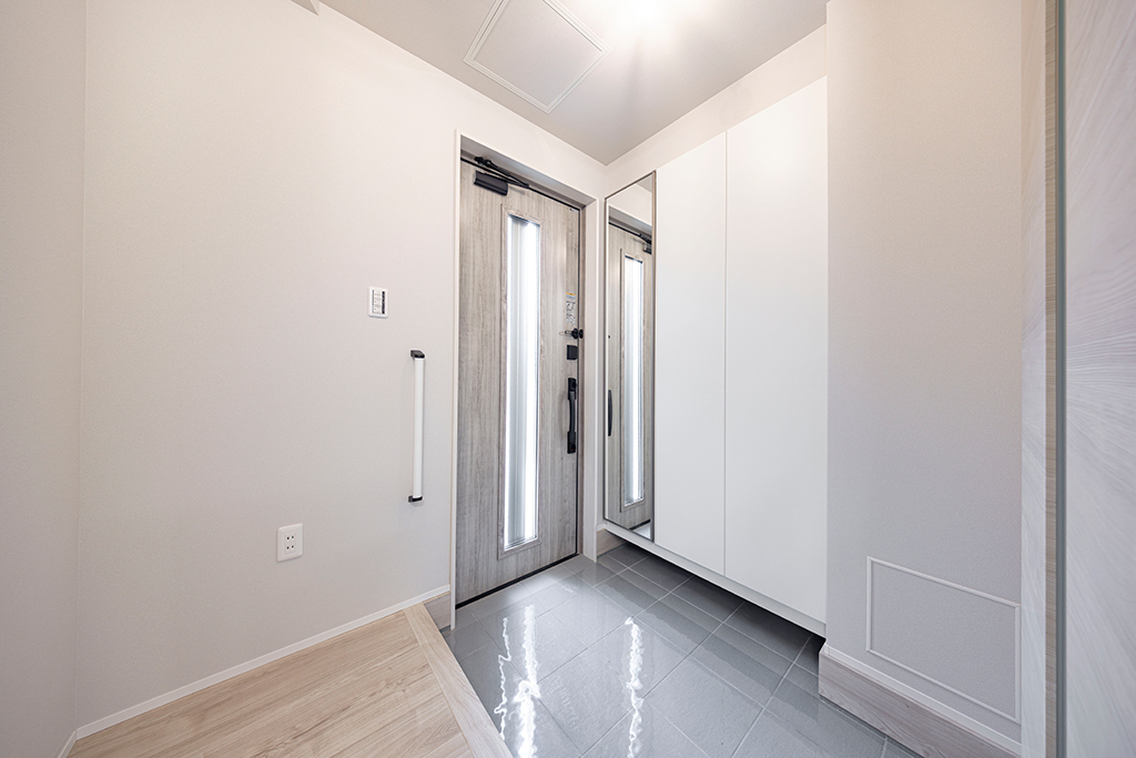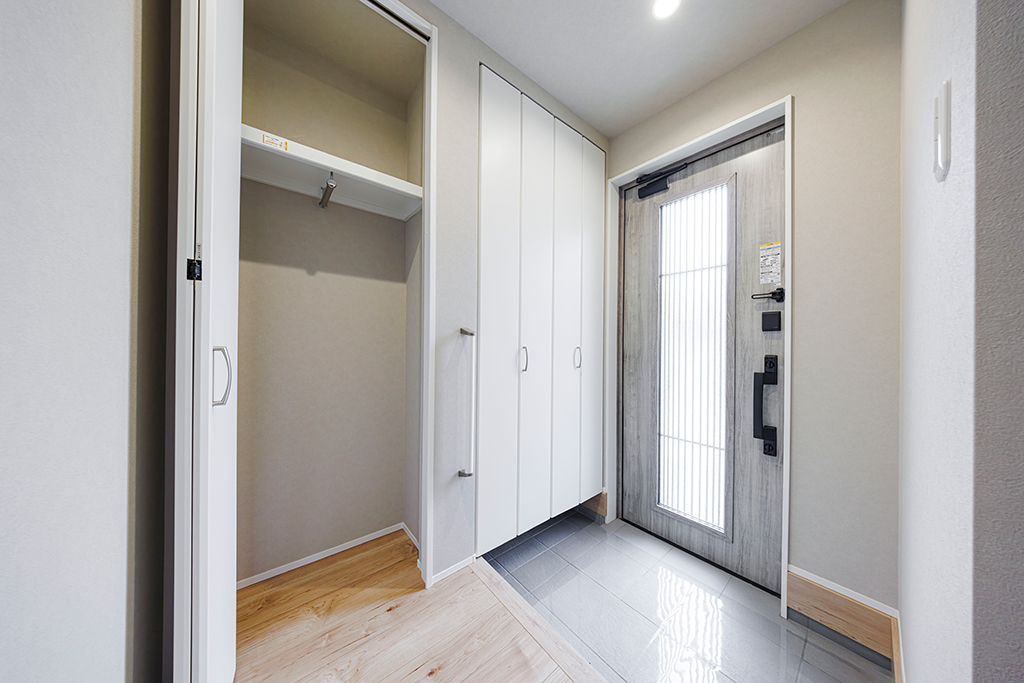 玄関をすっきりと見せてくれるシューズ・エントランスクローク。お履物だけでなく、大きな荷物も楽々収納できます。