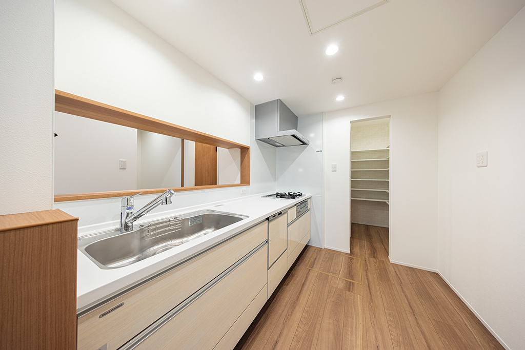 大きなパントリーがキッチンに隣接。
