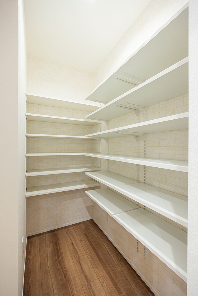 食材や調理器具がたくさんしまえて、料理がより楽しくなる大容量のパントリー。緊急時の備蓄スペースにも活躍。