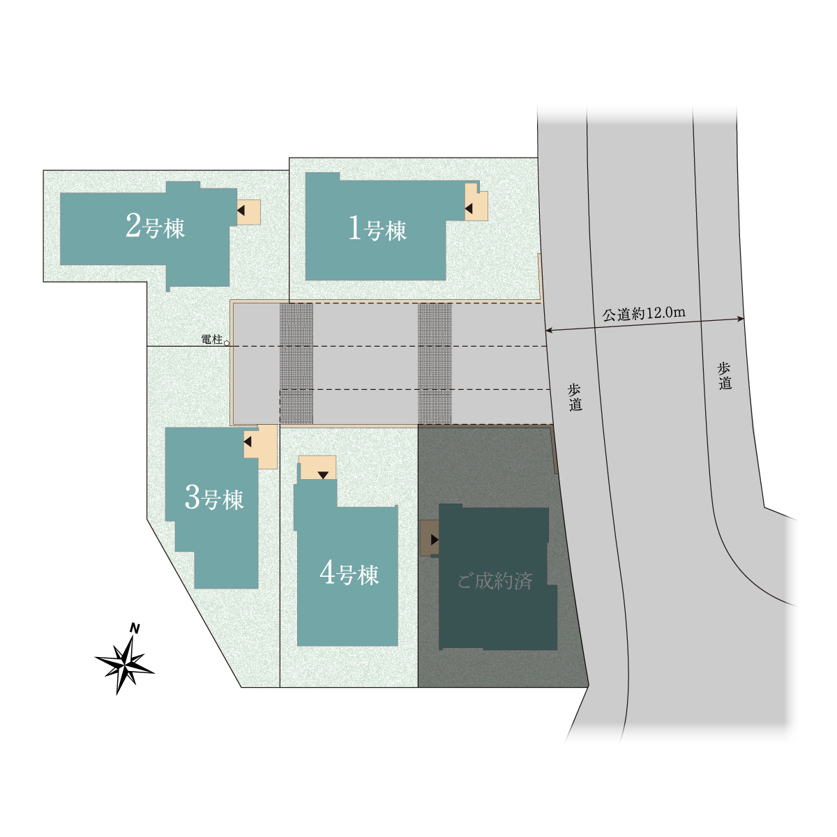| 備考 | ※敷地の一部(2号棟:48.81㎡、3号棟:55.20㎡、4号棟:34.35㎡)には通行地役権が設定されております。詳細はご確認ください。 |