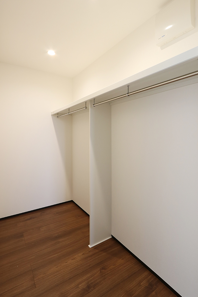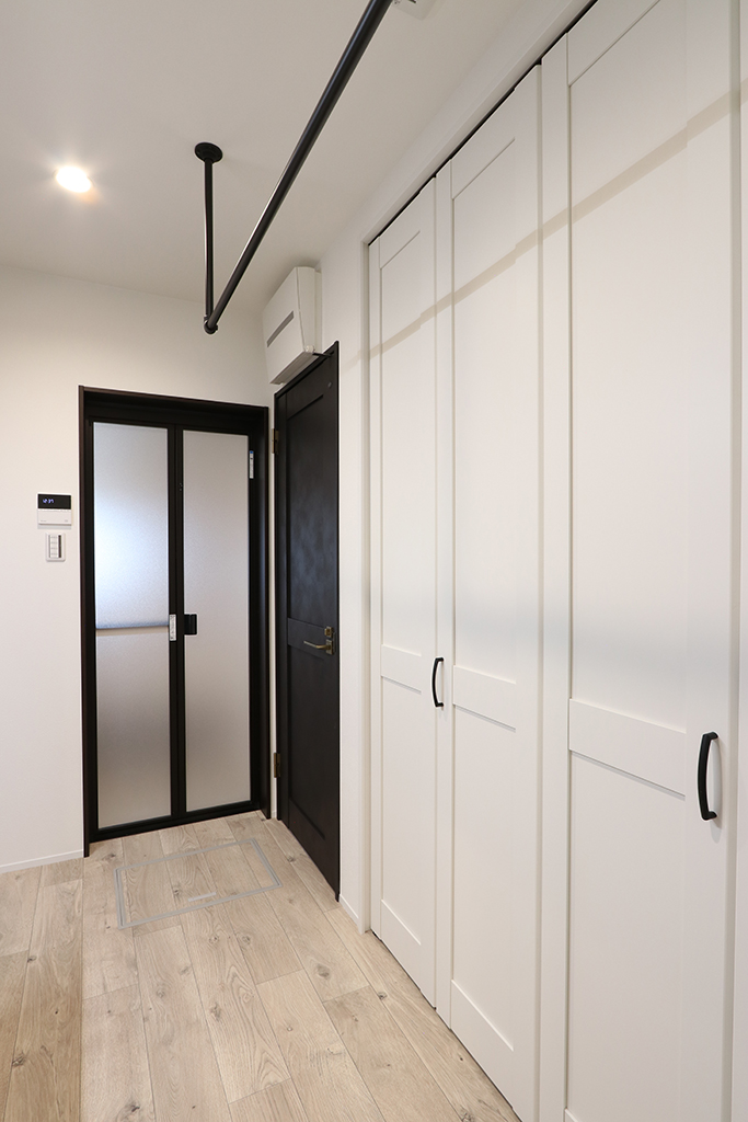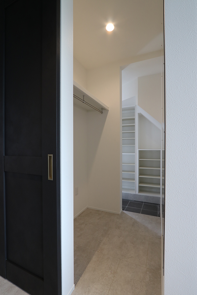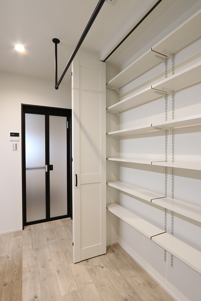 外出時にしか必要のないアウターはエントランスクロークに収納するのが便利。サニタリールームへダイレクトにアクセスできるから汚れ物の洗濯に最適。