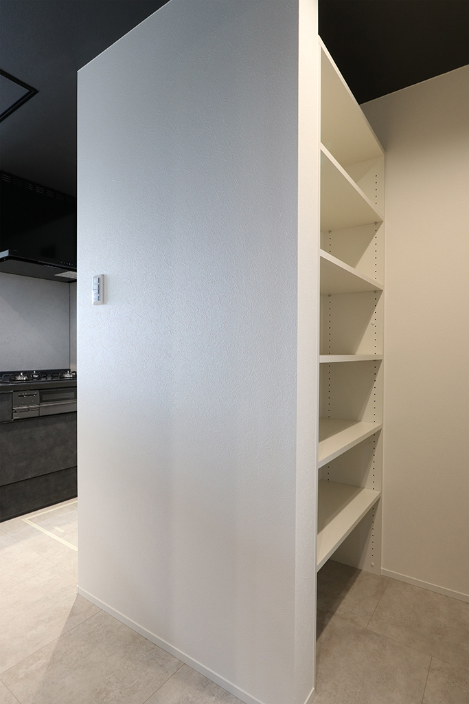 食材や調理器具がたくさんしまえて、料理がより楽しくなる大容量のパントリー。緊急時の備蓄スペースにも活躍。